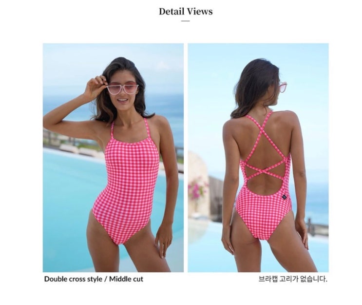 르망고수영복추천/르망고여자수영복/르망고깅엄체커핫핑크더블크로스/르망고수영복사이즈/수영장수영복추천