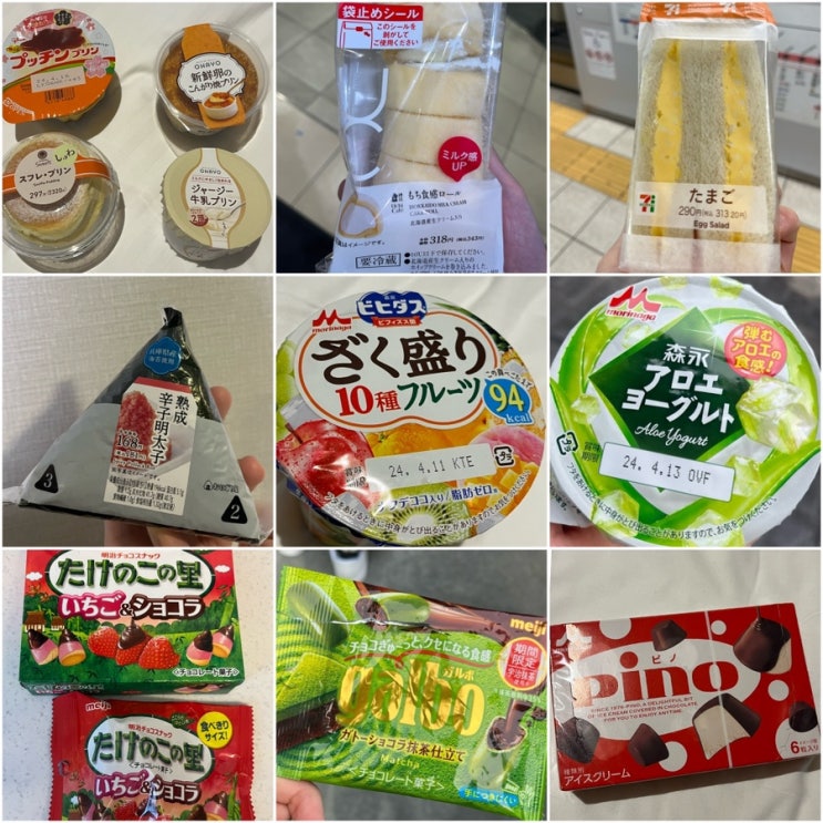 일본편의점 간식추천ㅣ푸딩4종 알로에요거트 모찌롤 에그샌드위치 명란마요삼각김밥 피노