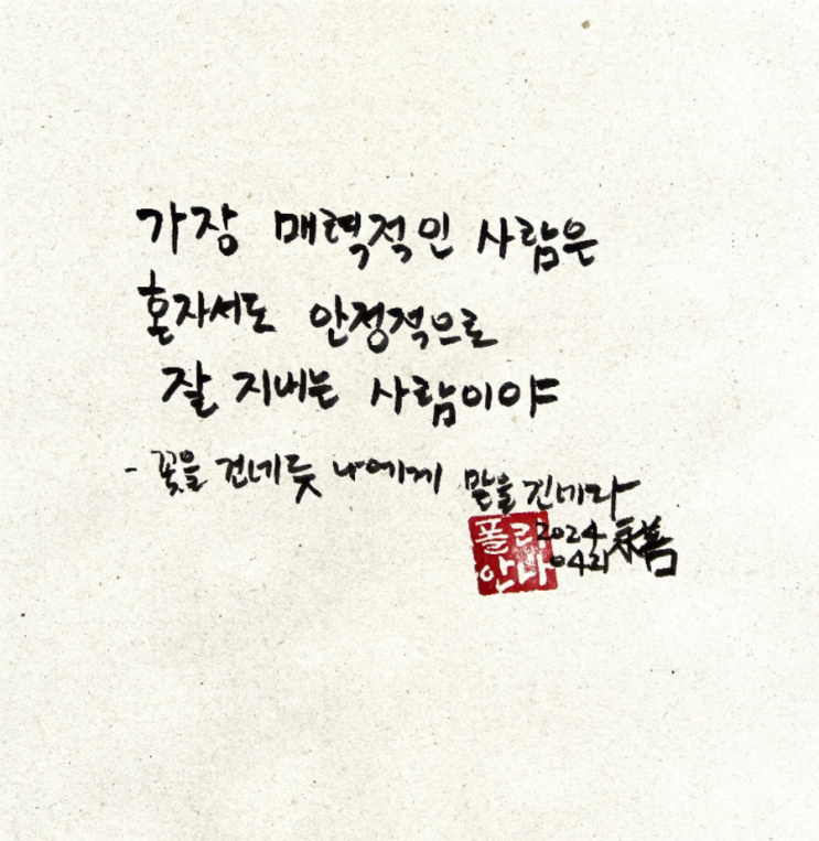 가장 매력적인 사람은 혼자서도 안정적으로 잘 지내는 사람이야 4월 21일 가장 매력적인 사람은 혼자서도 ...