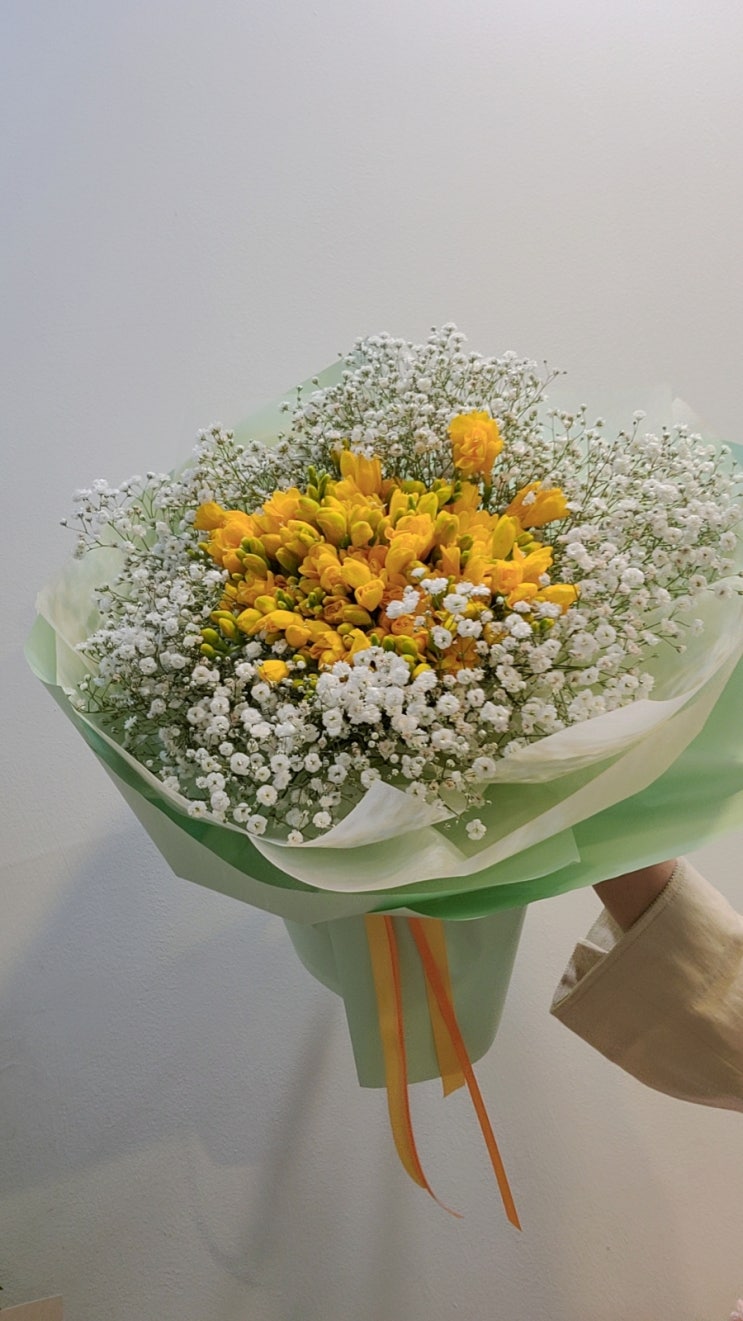 영등포 대형사이즈 후리지아안개꽃다발 당산동꽃집 꽃과정원