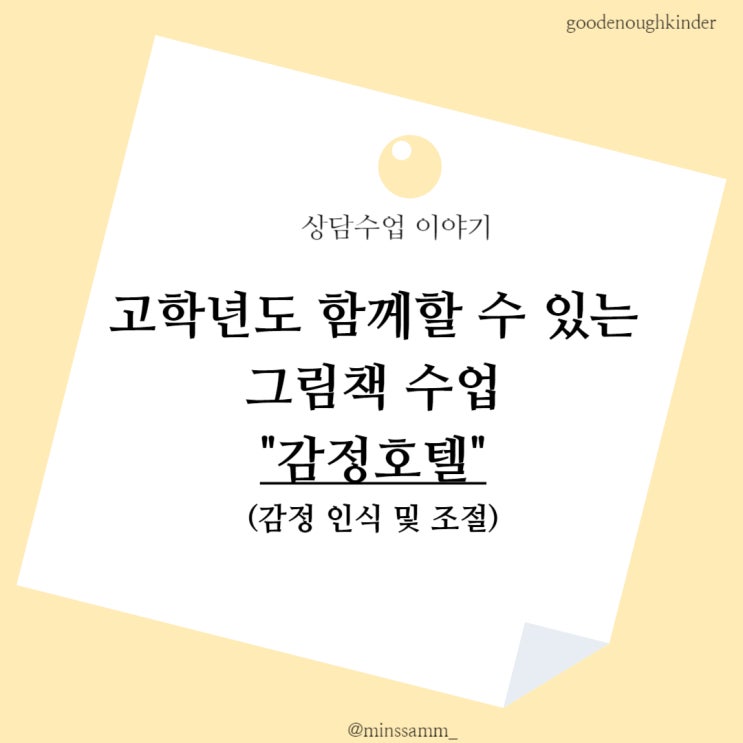 안녕하세요, 민쌤이에요. 오늘은 오랜만에 상담수업에서 활용할 수 있는 그림책 한 권 소개하려고 해요. 그...