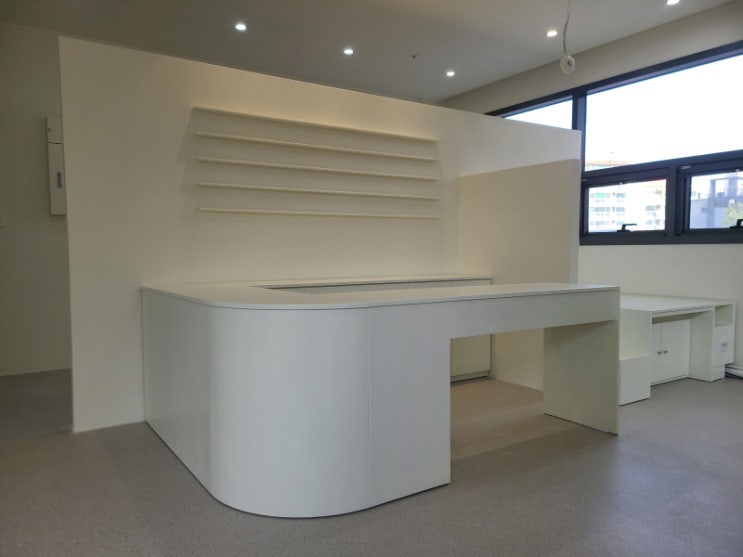 깔끔한 화이트 컬러의 카운터 데스크 제작