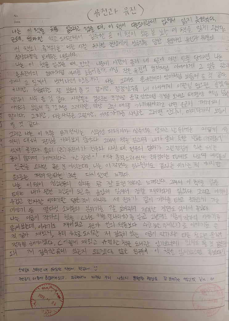<유진 과 유진>이금이 장편소설 청소년 추천 도서 독서 감상문 쓰기 줄거리