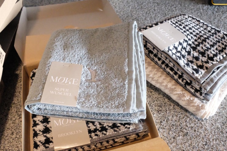 100% 독일에서 제조된 고급스러운 명품수건 뫼베 깔끔한 단상자 포장으로 답례품 선물로도 괜찮을것 같다. ...