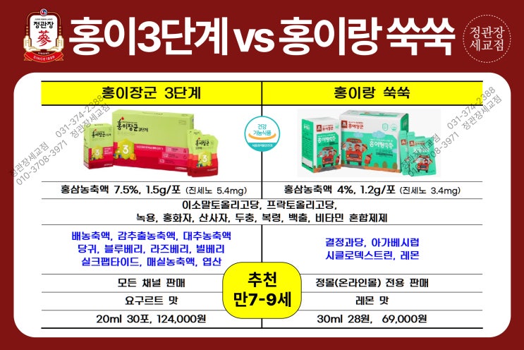 정관장 홍이장군 3단계와 홍이랑 쑥쑥 비교 ㅣ만7세 ~ 9세 전용 상품