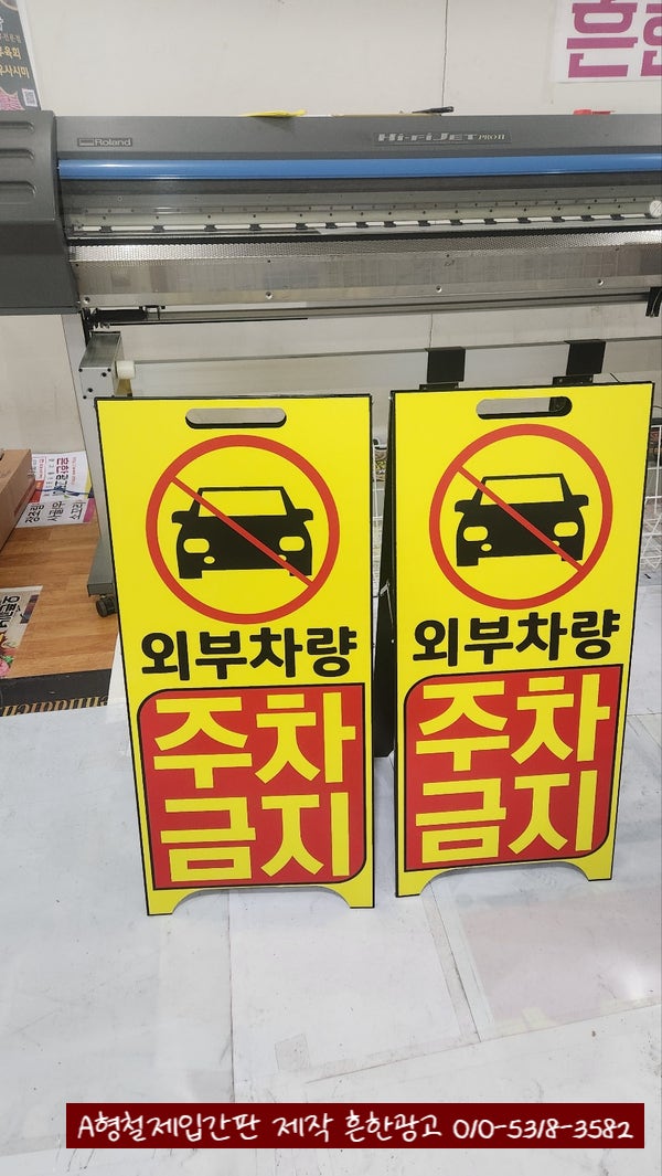학교 외부차량주차금지 표지판으로 제작된 A형철제입간판