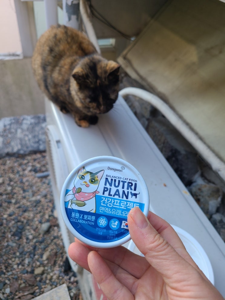 우리 마당 길고양이들을 위해서 준비한 고양이습식사료 캔 뉴트리플랜 주식캔이랍니다. 동원 뉴트리플랜에...