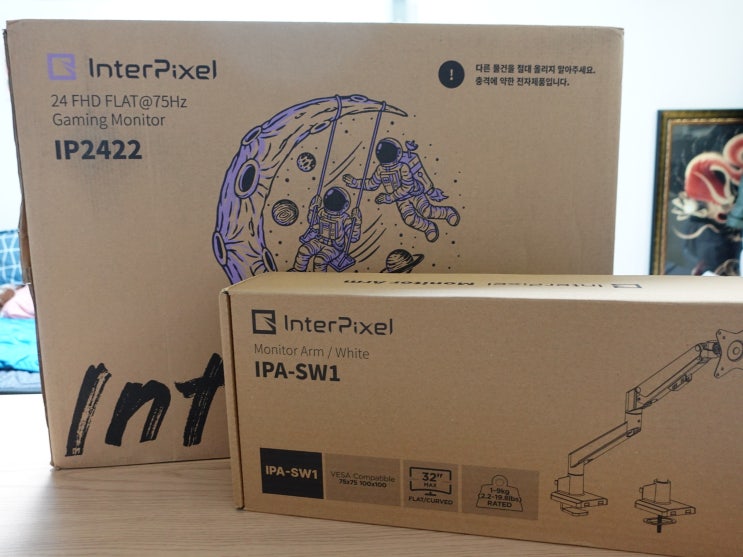 가성비갑 내돈내산, 인터픽셀 IP2422, 24인치 화이트 모니터 & 리모컨 (feat. 모니터암)