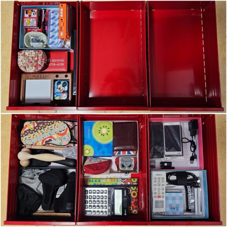 종이상자 칸막이 활용한 철재 서랍장 정리