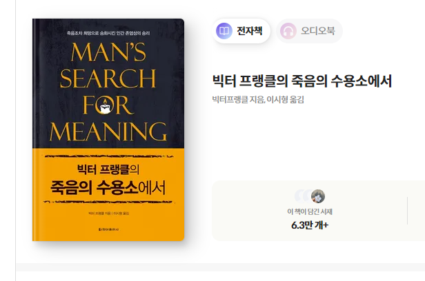 밀리의 서재에서 죽음의 수용소를 듣다. 김상백 성우님의 목소리가 듣기 좋았다. 운전 중 부드럽게 들리는 ...