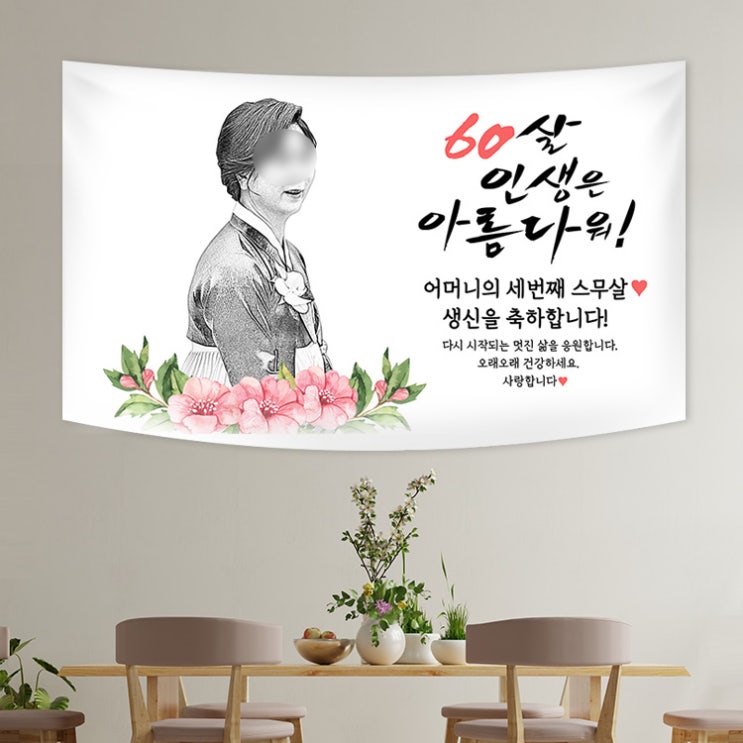 환갑현수막 플랜카드 제작 부모님생신현수막 연필초상화 디자인