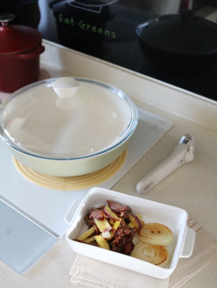 저는 무쇠냄비를 정말 좋아합니다. 시즈닝이 필요한 무쇠팬도 사용하고 코팅이 되어 있어 간단한 주물냄비...