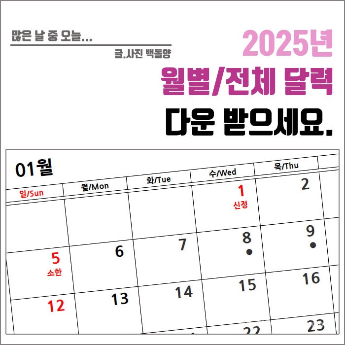 2025년 월별, 전체, 손 없는 날 달력 프린트하세요(feat. 2024년 달력)