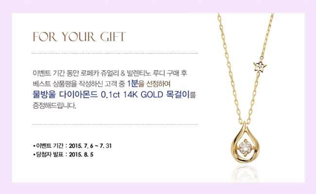 동화면세점 로페카 주얼리 7월6일~7월31일까지 상품평 이벤트 - 사은품 0.1ct 물방울 Dia.14K Gold 목걸이 증정