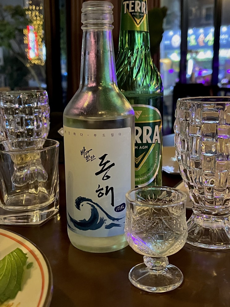 밤리단길술집 미담화에서 숙성회에 독도소주 동해소주 먹고온 후기