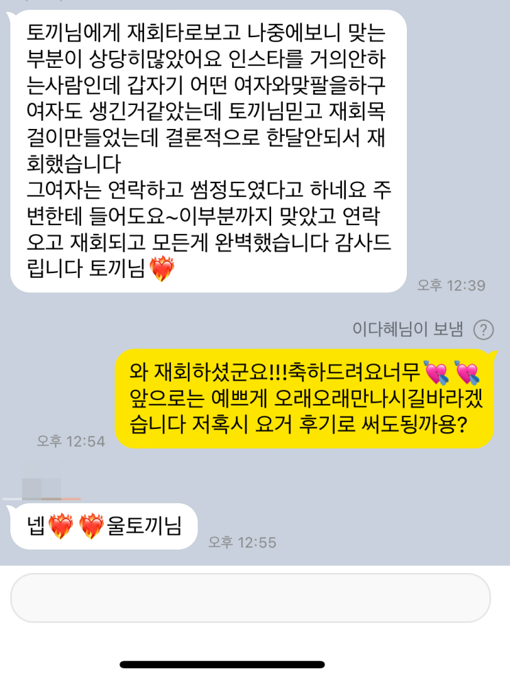 안녕하세요 달토끼타로입니다?? 오늘은 저에게 카톡타로 재회운을 보시고 너무 잘맞으셔서 재회부적...