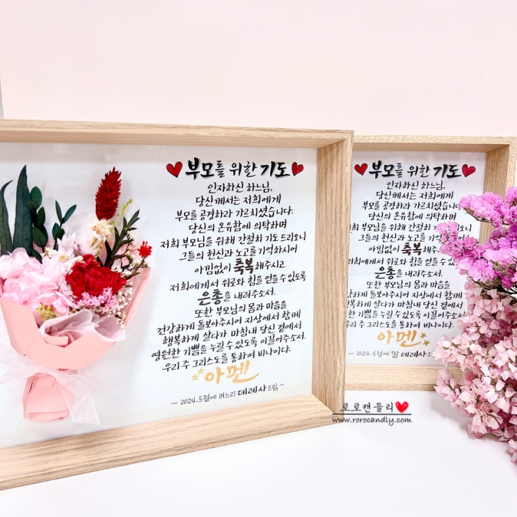 부모를 위한 기도 캘리그라피 액자 / 부모님 선물 카네이션 꽃다발