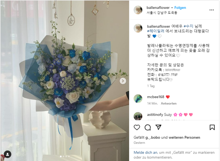 헤이딜러 광고모델, 한소희에서 수지로 교체되나...헤이딜러가 수지에게 선물한 꽃다발 포착