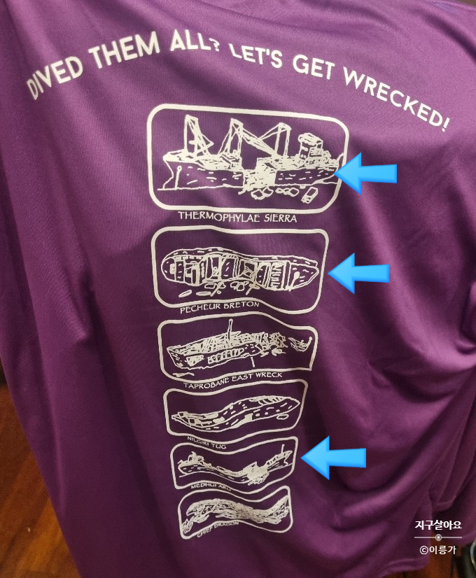14. 콜롬보 다이빙센터에서 온 래시가드!! 난파선이 그려진 내 소중한 보라색 래시가드??
