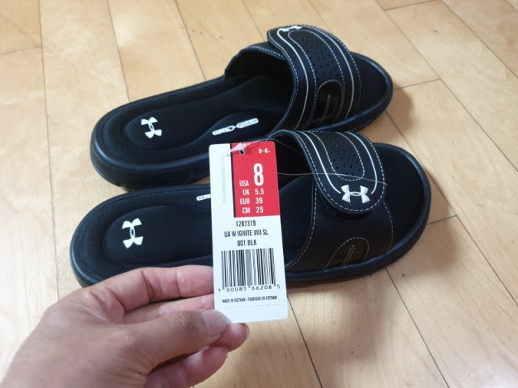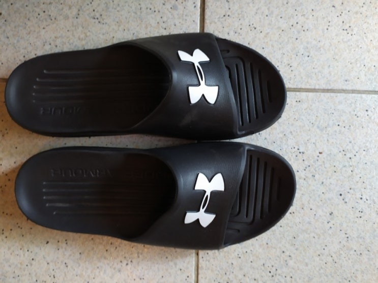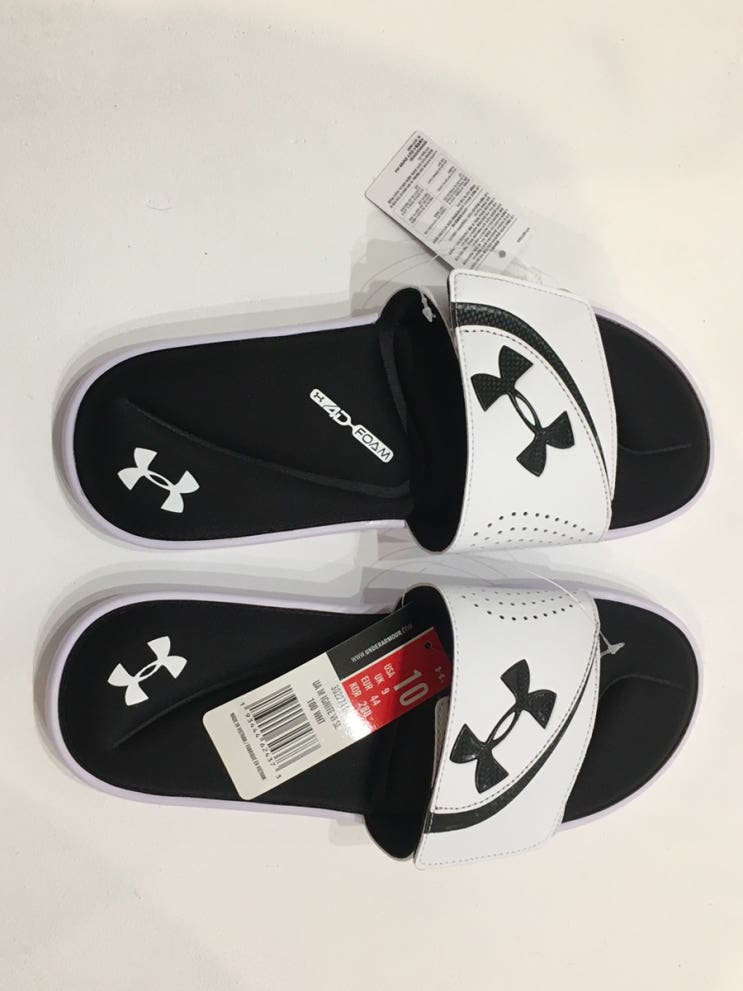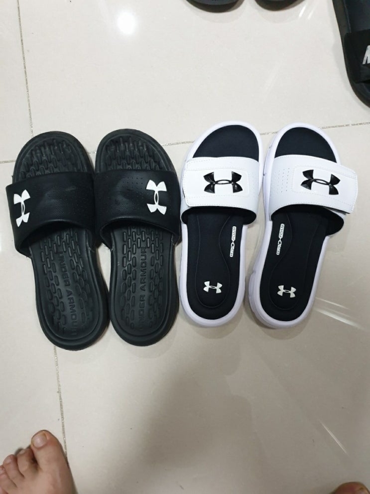 남성 언더아머 슬리퍼 화이트 여자도 신을수 있어요.