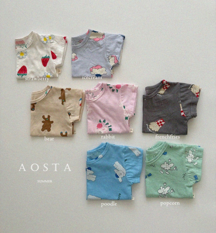 아오스타_쿨썸머티 S(0~1Y) M(1~2Y) L(2~3Y) XL(3~4Y) 2XL(4~5Y) 딸기, 아이스크림, 곰, ...