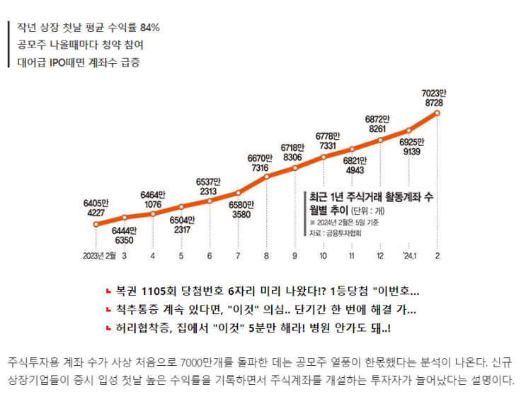 주식투자용 계좌 수가 7,000만개를 돌파했다고 합니다. 단순히 숫자로만 본다면 국민 1인당 최소 1개 이상...