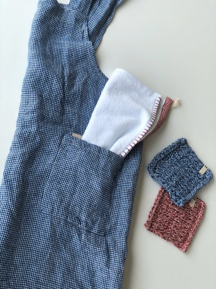 여름재질 린넨 체크앞치마,,뒤크로스형으로 가볍고 편하게 입어요