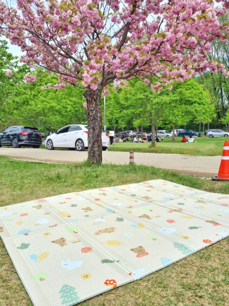 피크닉의 계절이죠 ㅎㅎ 아이들과 꽃놀이 다녀왔는데요 피크닉 돗자리는 필수죠 ㅎㅎㅎ 국민 아이템 파크론...