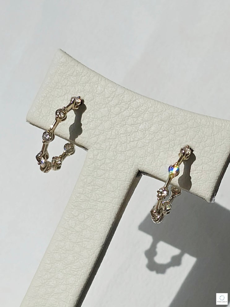 #14K브릿지다이아몬드귀걸이 엣지있는 우아한 무드의 14K다이아몬드팔찌와 함께 시리즈로 출시된 링귀걸...