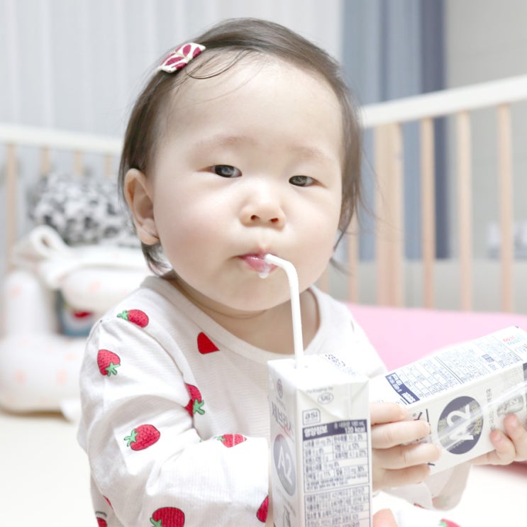 아기에게 꾸준하게 먹여야 하는 간식은 역시 우유 - 간편하기도 하고 간단하게 영양소를 챙길 수 있으니 늘...