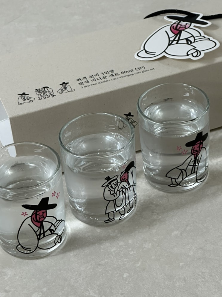 조금 뒷북이지만,,! 한창 SNS에서 대란이었던 국립중앙박물관 굿즈인 취객 선비 3인방 변색 소주잔 구매...