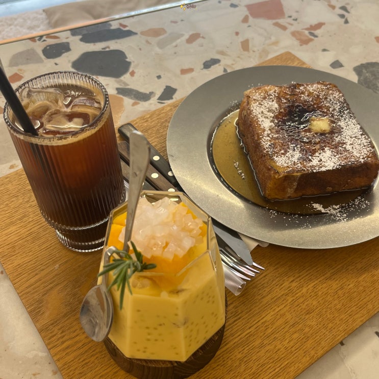연남동카페 연트럴다방 벚꽃구경하며 사고펄이 들어간 망고사고 먹기