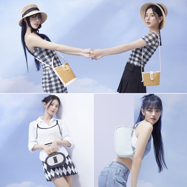 여자아이들 미연&민니 여자 여름 가방 화보 제이에스티나 핸드백 라탄백 추천