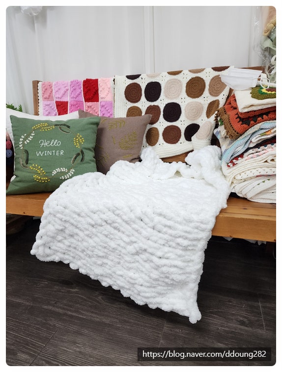 다이소 실 핸드 니팅 무릎담요, 미니 러그
