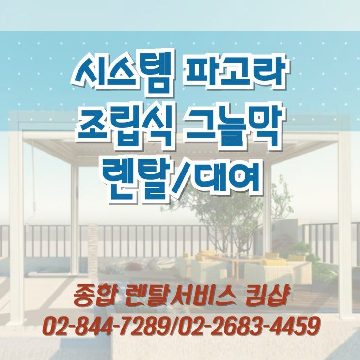 시스템파고라 렌탈! 조립식파고라 옥상 원두막 테라스 그늘막 야외가구 전문 킴샵