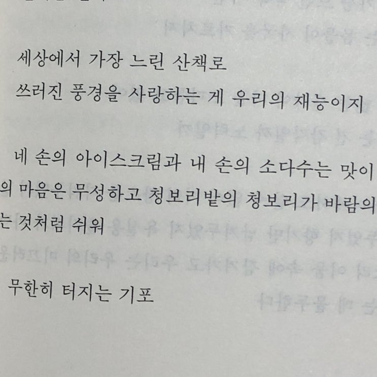 아무도 없는 곳으로 놀러가자 내 손바닥에 밴 아오리사과 향기 그러나 압정을 한 움큼씩 쥐고 있는 기분 너...