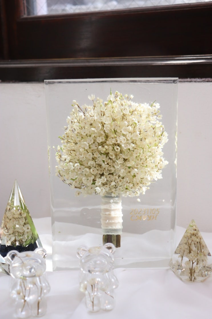 [숲의안부] 작고 여린 은방울꽃 부케, 레진액자로 보관하기_ 구미부케액자, 구미부케말리기, 부케드라이, 부케선물, 구미부케선물