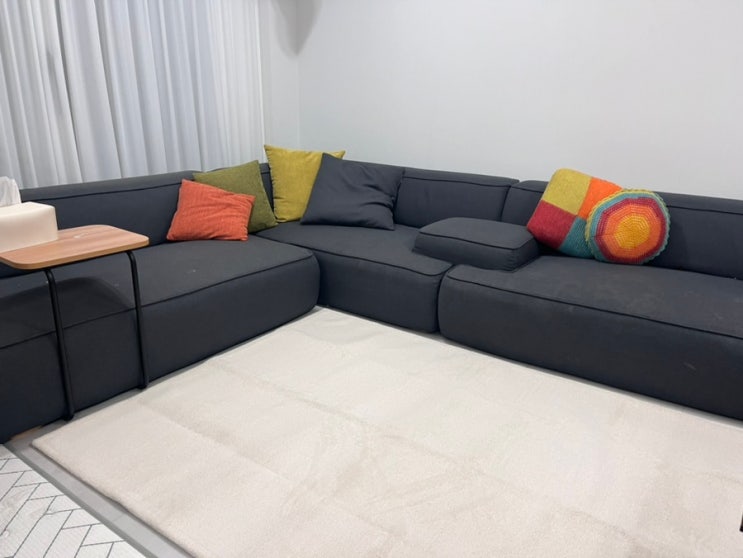 단모러그로 바꿔봤어요. 사계절모두 사용 가능한 러그를 알아본다면 제니스러그 참고해 보세요.