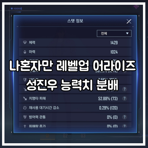 안녕하세요. 게임 블로거 스티브 입니다 ! 나혼자만 레벨업 어라이즈를 플레이 하는 중 성진우 능력치 즉 ...