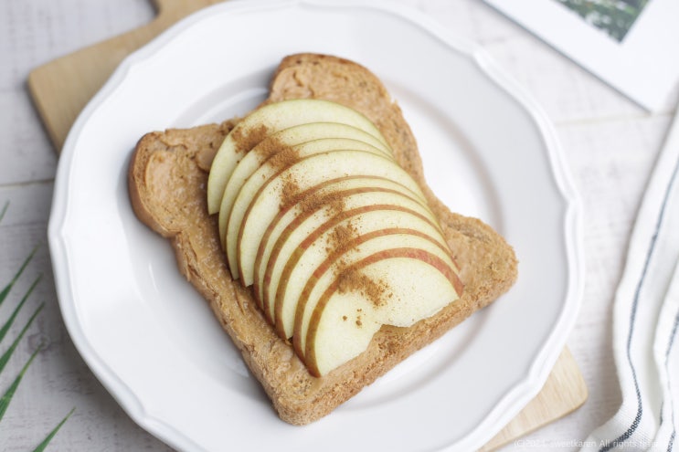 땅콩버터 사과 샌드위치 통밀식빵 오픈토스트 아침사과 식사대용