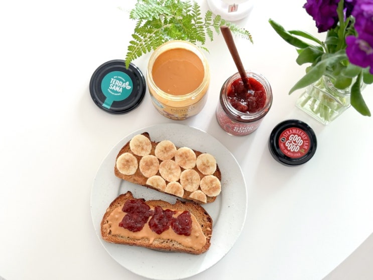 피넛버터젤리 샌드위치 만들기 저당딸기잼, 땅콩버터추천