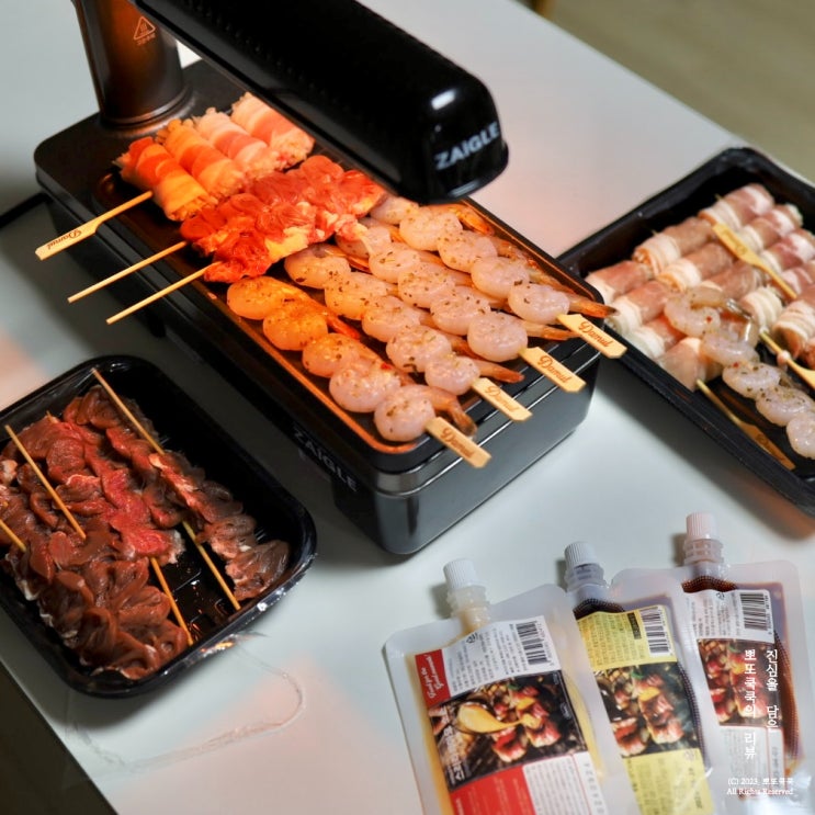 가정용그릴 조리한 캠핑꼬치 후기. 집에서 가정용 전기그릴에도 쉽게 구워먹기 좋은 캠핑수제꼬치, 소스까...