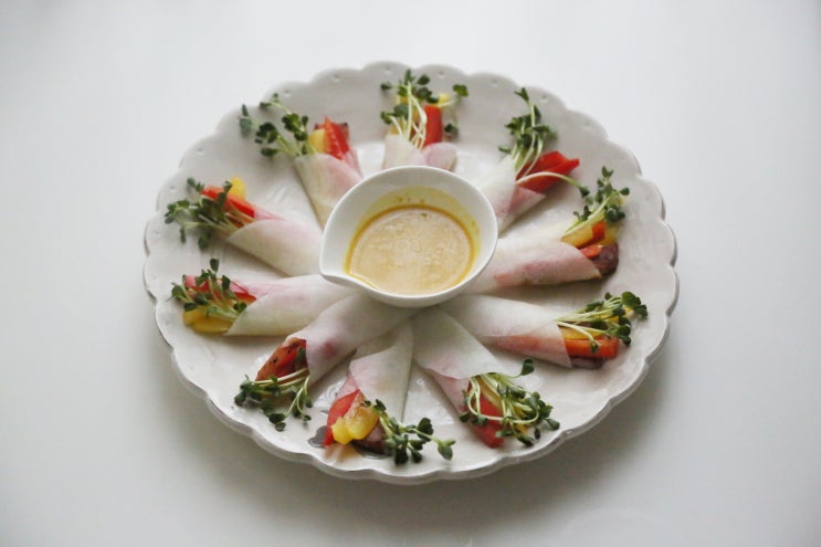 만들기는 쉬운데 모양이 너무 예쁜 무쌈말이~ 이번엔 훈제오리고기가 아니라 삼겹살로 만들어 보았다~ 삼겹...