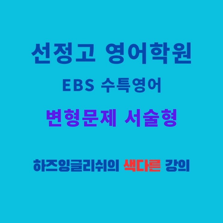 안녕하세요? 선정고 영어학원 하즈잉글리쉬 대표 하준샘입니다. 고3 정규 수업은 내신기간임에도 불구하고 ...