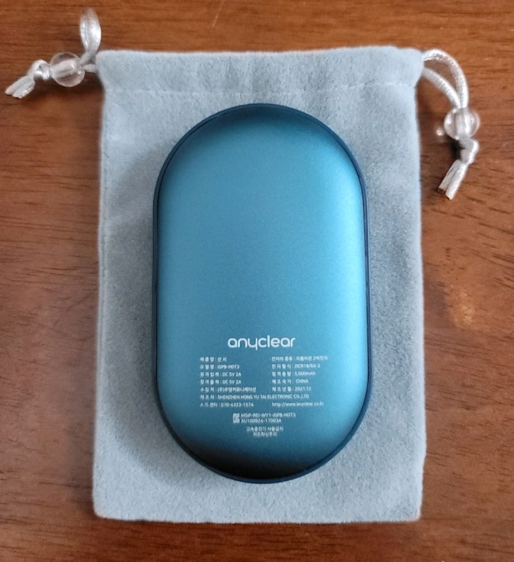 애니클리어 USB 충전식 보조배터리 케이블 겸 휴대용 손난로 장시간 유지 전기 핫팩 양면 발열