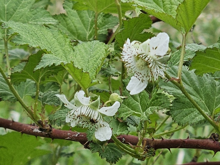 자연산 산딸기꽃이 하나둘 피고 있다 산딸기는 뿌리가 앝고 넓게 퍼진다. 영양생식으로 번식을 하는 식물은...