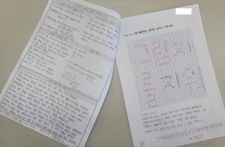 재미까지 잡은 수학 문제 만들기 수행평가였던 '수학 도서 스토리를 활용한 다항식 방탈출 게임'에서 학생들이 만든 수학 문제