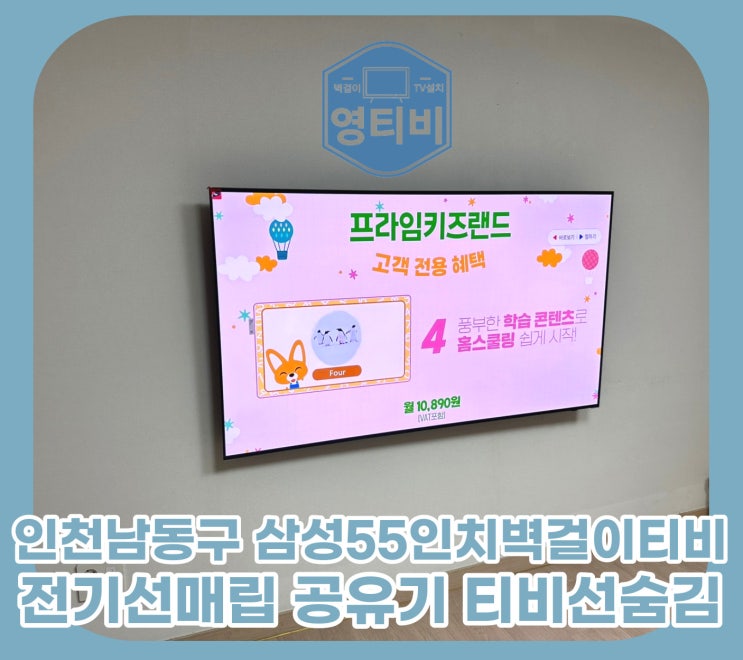 [천안 아산 티비] 아산시 음봉면 아산온천로 528-21 (주)화인트로 자동차 부품 제조업체 사무실 삼성 55인치 벽걸이 티비 설치/ 회의실 벽걸이 티비 설치/ 가벽 벽걸이 TV