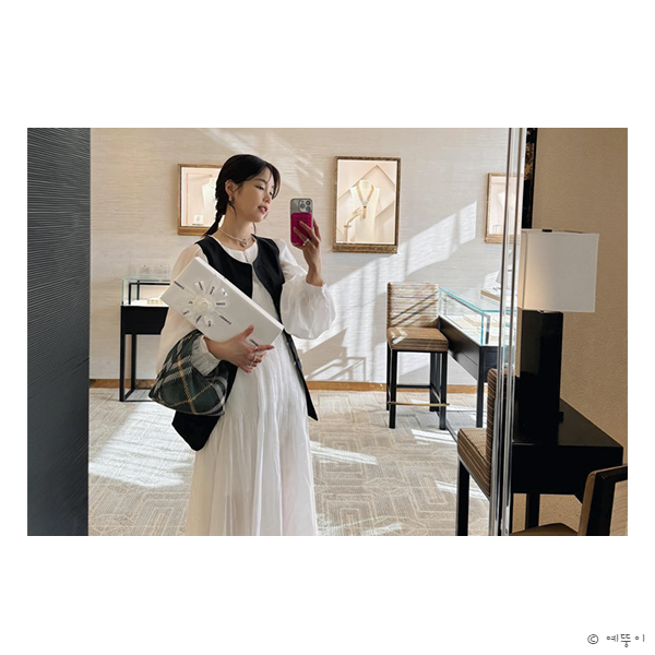 오늘의 패션 배우 기은세님이 청순한 화이트 원피스에 포인트 준 버버리 가방 페그 더플백 미니 사이즈와 ...