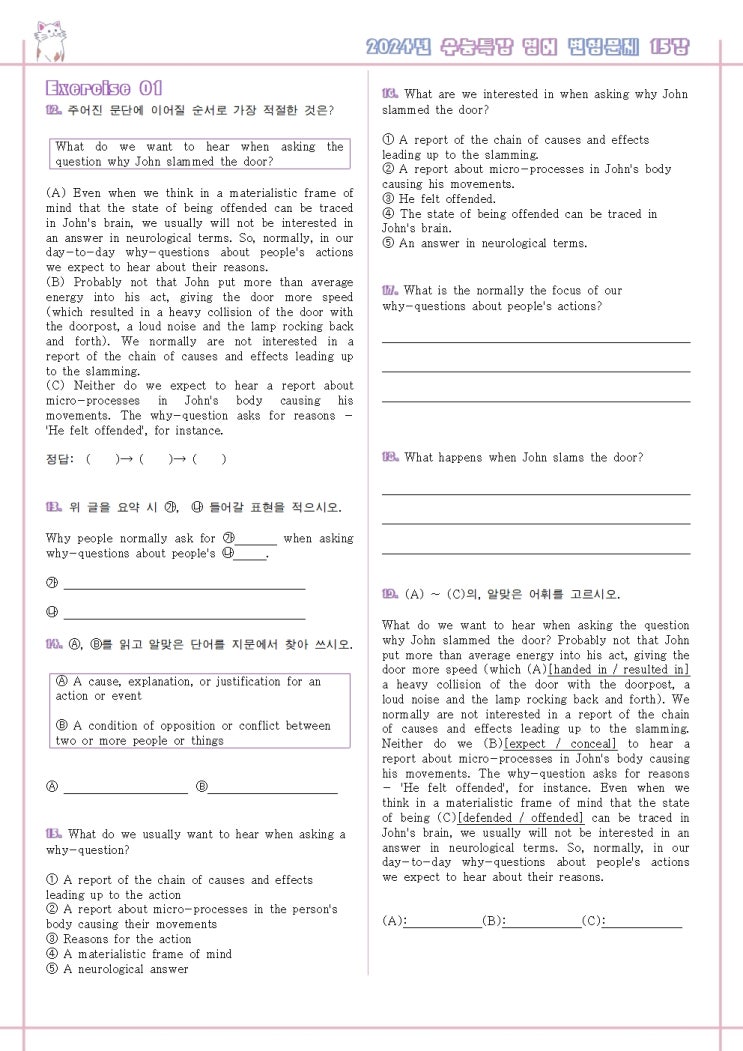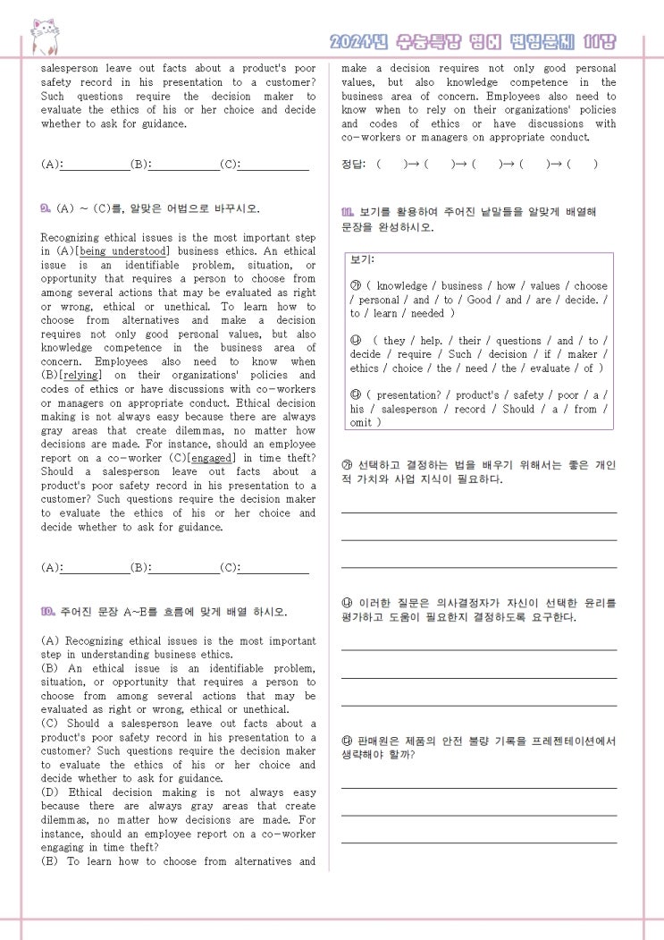 2024 수능특강 영어독해연습 9강 변형문제 무료 나눔